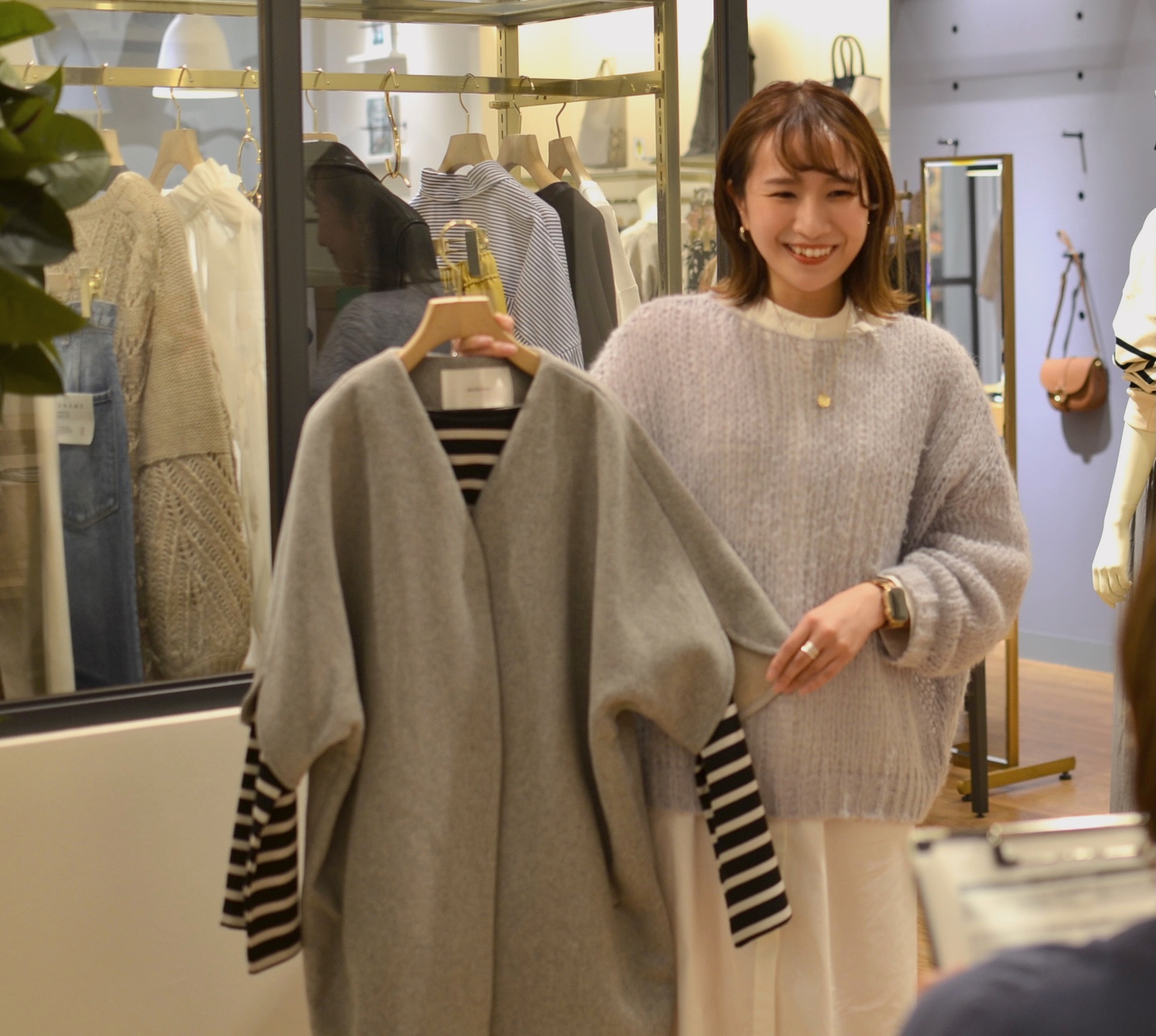直接、お客様とお話しする中で、好みや背景を浮かべ、教えて頂きながら、一緒にお洋服を選ばせて頂ける時間が私自身、凄く幸せを感じています。